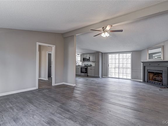 • Bedroom on Main Level, Ceiling Fan(s), Fireplace, Granite Counters, High Ceilings, Main Level Primary, Walk-In Closet(s)
