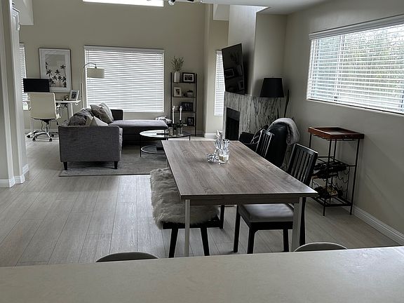 Beautiful upper front unit. Totally remodeled modern large unit. Architectural building with 2 bedrooms, 2 baths. Large loft. can be used as office or 3rd bedroom. Bright unit with high vaulted ceilings throughout. Wood laminate flooring, recessed LED lighting , formal dining, kitchen. Living room has fireplace and balcony. Kitchen features stainless steel appliances, quartz counters, wood cabinets. Separate formal dining room. Washer/dryer, central air/heat, 2 parking spaces in secure garage. Pet friendly. Great quiet area! Walk to Whole Foods and restaurants. Call or text for showing!. Amenities: Pet Friendly, Hardwood floors, Balcony / patio, Fireplace, Gated access/parking, Lower Utilities. Appliances: Dishwasher, Microwave, Refrigerator, Washer/Dryer.