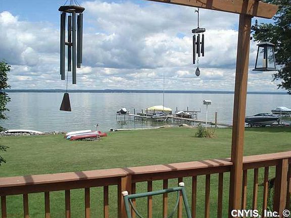 THE PROPERTY SOLD AND CLOSED MONTHS AGO , JUNE 2016. . iT WAS AN EXCEPTUAL WATERFRONT PROPERTY, 84ft of prime waterfront on the South Shore of Oneida Lake. Spacious home with panoramic views of the lake from most rooms. Open architecture, cathedral ceilings, French doors. Back wall of living room completely windowed with walk out to wrap around deck overlooking the lake. Gas fireplace in living room. Formal dining room, Large country kitchen with pantry. 3 bedrooms, 2 full baths. Lower level family room/bedroom and laundry room. 2 car garage. Property meticulously maintained. Dead end street. 25 minutes from downtown Syr. Move in ready.