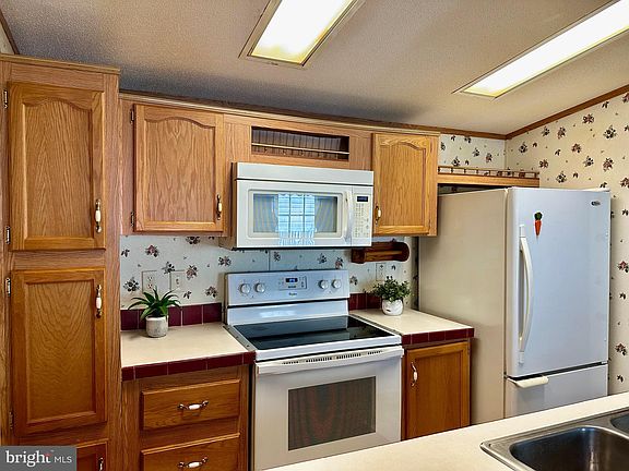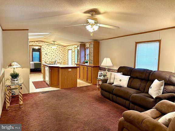 This spacious Mobile home features an open floor plan & split bedroom design. The primary suite has a walk-in closet and large bath with tub/shower. The guest bath is adjacent to the second bedroom and has a walk-in shower. Both bathrooms have new vinyl plank flooring, and there is lots of fresh paint too! The oak kitchen is in great shape and Washer and Dryer sit in a laundry closet just off the kitchen. The huge covered porch is perfect for morning coffee and summer evenings. The shed has been freshly painted and the roof was just replaced, the exterior was power washed and new skirting has been installed. Definitely move in ready! This mobile home is in a 55+ community with a lot rent of only $550 which includes w/s/t and snow. Must have at least a 640 Credit score.