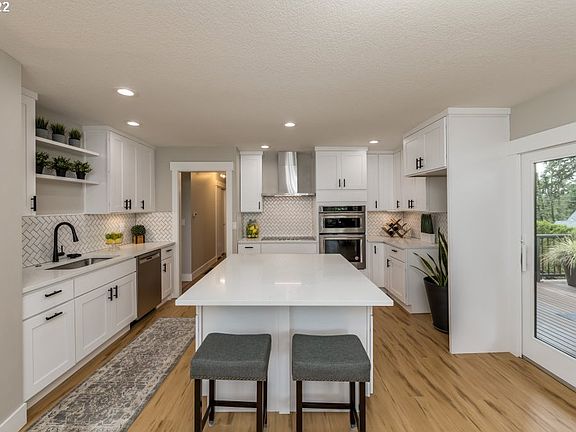 MT HOOD VIEW! Gorgeous remodeled mid-century modern home on a huge double lot. Ultimate privacy on a dead-end street. This a 4/5 bedroom with 3 full baths. Almost 1/2 an acre with large lawns, parking, outbuildings in back and multiple decks for entertaining. Room for Large Shop or Large Pool (SEE VIRTUAL PHOTO) . Beautiful high-end kitchen and bathroom finishes. Large family room/bonus with kitchenette for possible multi-generational or ADU with separate entrance.
