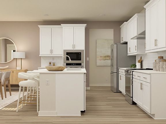 This 5-bedroom Winston floorplan is a wow home! The home features an open concept kitchen with abundant cabinets and countertop space and a huge island, 42" shaker style cabinetry, quartz tops, tile backsplash, and under-cabinet lighting with light rail. Luxurious primary suite with tile floor, executive height cabinets, quartz top, and oversized walk-in ceramic tile shower with built-in bench seat. Guest suite on main level! Spacious family room with gas fireplace, LVP flooring in main living areas, tile in secondary baths and laundry. Luxurious features throughout! Ring doorbell, Schlage keyless entry, Honeywell WIFI thermostat, and more! Covered patio, drop zone with bench, 2" faux wood blinds on operable windows. Huge savings with seller incentive!