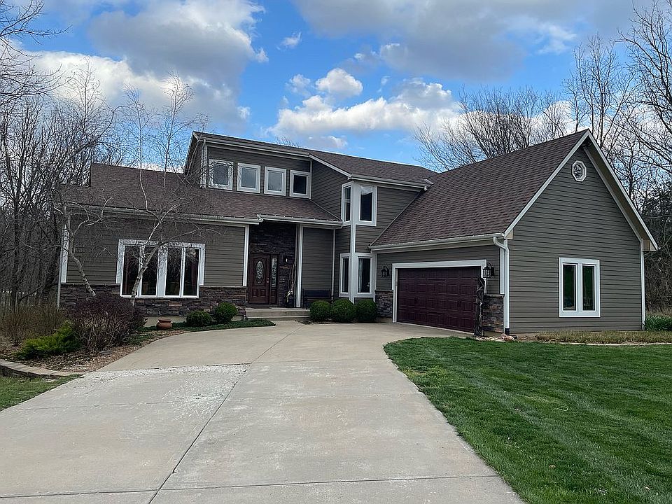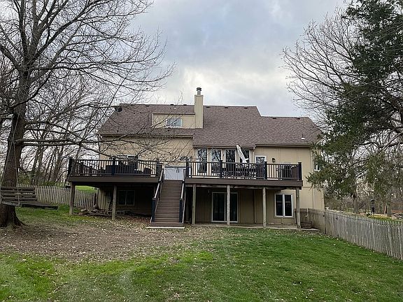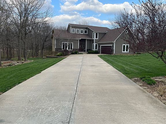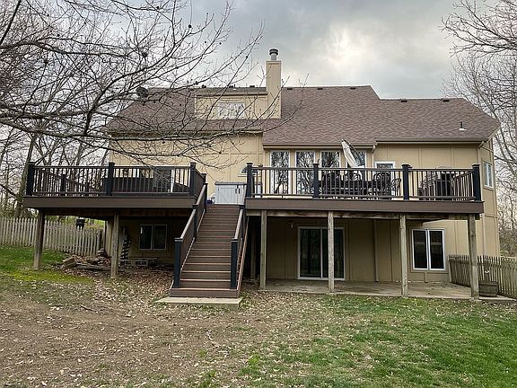 BREATHTAKING 1.5 story home in the highly sought-after Hickory Hills subdivision in Harrisonville, MO. This 5 bedroom (plus an additional non-conforming room), 4 bathroom home includes countless updates and sits on a 2.7 acre lot with private lake access & fishing dock! You will fall in love with this peaceful neighborhood! Updates include a NEW roof in 2017, NEW carpet, NEW interior paint, NEW blinds and more! Welcoming sitting room right off the entry. The living room boasts a large stone fireplace and a wall of windows overlooking the deck! The kitchen was recently updated with new granite countertops, backsplash and painted cabinets, and includes a breakfast bar, s/s appliances and formal dining room. The main-level master suite features a private sitting area as well as a master bath with a jetted tub and double vanity. Finished walkout basement with a family room, huge dry bar, billiard room, full bath and additional storage room that would be perfect for your hobbies! Newer PVC deck in 2013 with lighted posts on corners and stairs. Other features include the fenced backyard with mature trees, the grotto, a pond, irrigation system and central vac.