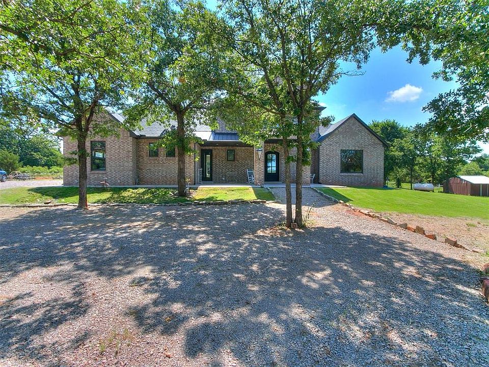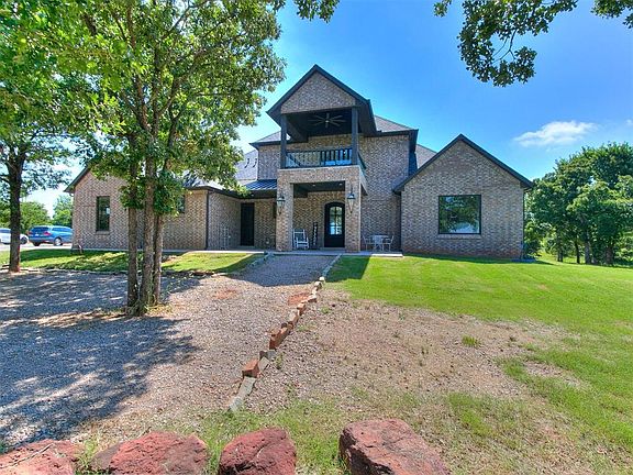 Welcome to quiet country living, but only minutes to I-35 for quick access to anywhere in the metro. This beautiful home is perfectly situated on 2.3 sprawling acres. This beauty boasts 3 beds, 3.5 bathrooms, an expansive upstairs bonus room or 4th bedroom, which has its own full bathroom and closet, and character for days!!! The open floor plan is perfect for entertaining. The kitchen has all top of the line stainless steel appliances, Frigidaire Professional Refrigerator, a large pantry, tons of natural light, massive center island, and storage for days! Nothing was missed in this kitchen for sure! The primary suite has double vanities, a large walk in shower, gorgeous stand alone bathtub, and large closet. Across the home, you will find bedrooms 2 and 3 that are separated by a Jack and Jill bath. Upstairs you will find bedroom 4/Bonus Room, which has brand new carpet, with a full bath and walkout balcony that is incredible!!! You have to see it! The backyard oasis includes a large covered patio, 18x36 Saltwater pool, and lots of peace and quiet! The front and back porch are so peaceful, both offering tons of space to relax, entertain, and take in wonderful views. Other things to love--Award winning Edmond schools, NO RESTRICTIONS, well water--no high water bills, RV Hookups with electrical and sewage next to the house, separate electrical and sewage towards the front of the property (by storm shelter) that is perfect for a guest house or additional home, footing poured for a 40x30 shop, Top of the line Hayward Pool equipment, basketball goal and pad, home is equipped for generator, and AT&T Air Internet now available. This home has it all!! WELCOME HOME!!!