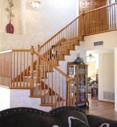 Rebuilt in 1996, This prestigious 4 bedroom, 3 bath home has a soaring two-story entry, and a staircase with wood bannister leading to private bedrooms upstairs. The double door master suite has a private bath with separate tub and shower, dual sinks and walk in closet. The one bedroom downstairs is perfect for a guest room, maid's room or in-law quarters. The living room has a built-in library wall with sliding ladder, and Satillo tile floors. The family room has a brick fireplace and sliding doors to the landscaped rear yard with a patio and soothing tile-lined spa that overlooks the peaceful vista below. Additional amenities include theater surround sound speakers, central heat and air, central vacuum, and 3 car garage. A MUST SEE PROPERTY!