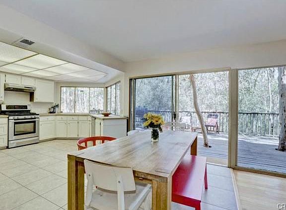 A cabin in the woods, in the middle of Orange County? Yes! This beautiful home sits at the end of a cul-de-sac and is nestled in a grove of beautiful trees making this home feel like a hidden forest getaway. As you step into this home, youll immediately notice the lovely backyard views from all windows. The backyard abuts a large grove of trees, and with no homes the behind and to the side, the lot feels even bigger than its 6000 square feet. The first floor has a separate living room with a fireplace, as well as a dining room just off the kitchen, all with wood laminate flooring. The kitchen and family rooms run across the back of the house with many large windows to enjoy the backyard view. Stepping out the family room sliding glass door, youll find yourself on a very large deck that spans the back of the house and is perfect for barbecuing and entertaining. Upstairs are four bedrooms and 2 full baths.The master has a large walk-in closet as well as a view deck where you can enjoy views of neighborhood and tree grove. The HOA amenities are unbelievable and include multiple pools, a Jacuzzi, tennis and basketball courts, gym, and clubhouse.