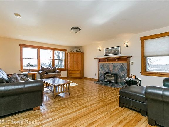 Many updates in this spacious two story farmhouse on 4.38 acres located on hard surface road! With 2498 sq ft of living space there is ample room for your family's needs. This home features beautiful hardwood floors, formal dining room and large living room with fireplace, 1st floor master, 1st floor laundry and tiled bath with claw foot tub. The second floor has nice bathroom, sunny office space, 2 very large bedrooms + a non-conforming bedroom, play room and good storage. This well maintained home has newer Pella windows, updated septic, new furnace 2015, new A/C 2013, water heater 2011 and all appliances are included. HSA home warranty gives peace of mind. 2 detached gar/shop + storage shed. Enjoy country living with beautiful views of the countryside, space for gardening, outdoor activities and even room for horses. ADM schools.