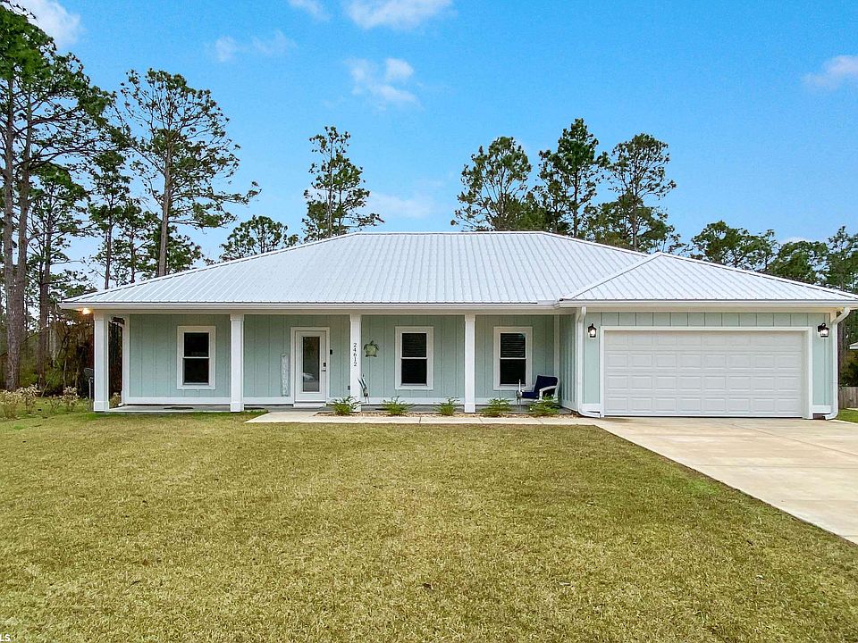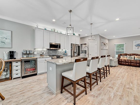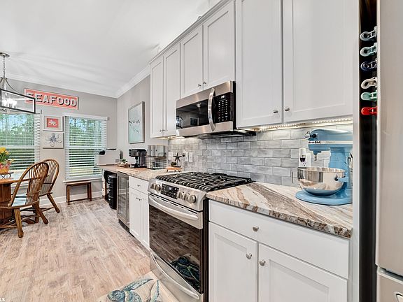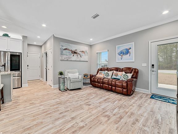 WOW, just what you have been waiting for this home is located minutes to the Gulf of Mexico's white beaches, Wharf’s Entertainment District, and Orange Beach’s sports plex. This coastal home was built to the gold fortified standard, in 2022, by Roy V. Scott. It sits on a cul de sac, backs up to Orange Beach’s public golf cart path, and has a community pool. The kitchen is a cook’s dream with its: gas range, tile backsplash, over sized kitchen island, and extra drink/wine refrigerator. You will love the homes custom features: crown molding, granite counter tops, luxury vinyl flooring, 9X 9 utility room with shaker cabinets, and up graded light fixtures. The spacious primary bedroom has trey ceiling, and 7 X 10 walk- in closet, the primary bathroom includes dual sinks, and walk-in tiled shower. This home has all the extras: 40 ft long front porch, 11 X 17 covered back patio, fence in backyard with golf cart gate, gutters, sprinkler system, tankless hot water heater and 140 mile an hour impact windows “No Hurricane Shutters Required.” Schedule your showing today, this home will not last long.