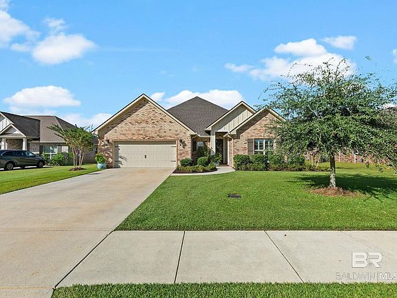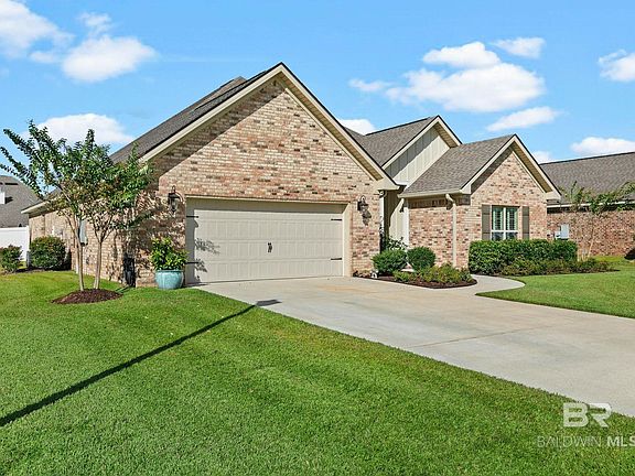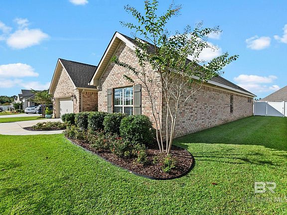 This distinctive Truland-built home stands out as the only Westfield floor plan in the neighborhood, offering a rare combination of architectural distinction and modern functionality. Designed with 14-foot ceilings, expansive windows, and plantation blinds throughout, the home exudes both openness and refined sophistication. The interior includes two ensuite bedrooms, each with large walk-in closets, while the kitchen showcases upgraded Quartzite countertops and contemporary finishes. A screened-in porch, extended patio, and professionally landscaped, fenced yard—featuring a Satsuma orange tree, pineapple guava bushes, outdoor lighting, and full irrigation—create an ideal environment for outdoor enjoyment. Built to Gold Fortified standards, this smart home integrates convenience and security through Ring doorbell, security camera, Alexa-enabled lighting controls, and smart garage access. Situated directly across from the clubhouse, adult pool, community pool, and splash pad, the residence also provides access to miles of walking trails surrounding scenic ponds. This home represents an uncommon opportunity to own a distinctive, high-quality residence in one of the area’s newer communities. Seller is a licensed Realtor in the State of Alabama. Buyer to verify all information during due diligence.