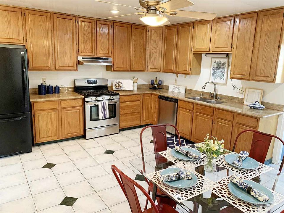 - KITCHEN FEATURES: Dishwasher, Eat In Kitchen, Range/Oven Free Standing, Gas Range/Cooktop, Refrigerator, Updated Kitchen, Counter - Stone