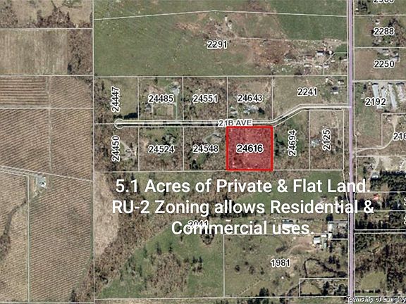 Over 5 acres of extremely private land. Zoning allows for residential & commercial uses. Residential: Flat & secluded, it's perfect for an estate property. Commercial: greenhouses, agricultural, equestrian/riding, veterinary, kennels, doggy day care, and more. 21B Ave is a very quiet road. Currently the property has two buildings on it, a mobile home that needs some TLC, and a newly begun and unfinished work shed with living space. The land is in the ALR.
