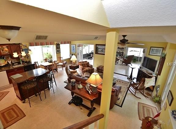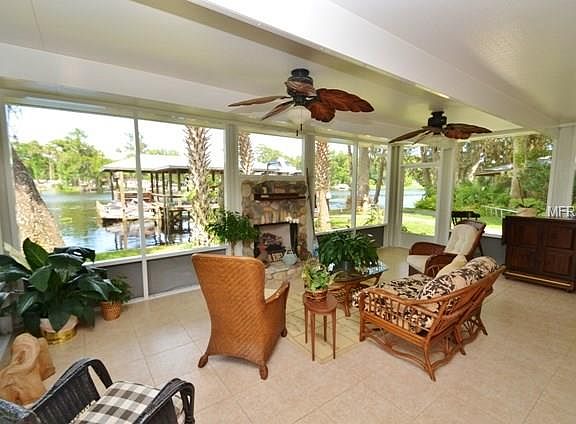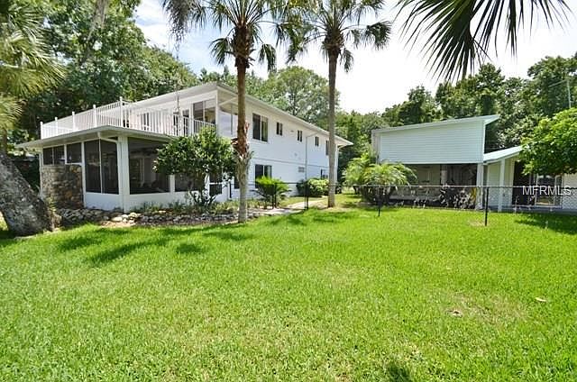 This delightful river front home has room for all your toys. 1500 sq. ft. boat house with two seating areas, two slips with lifts, double seadoo lift and a place for your 40 ft+ yacht. THEN, if that is not all - a covered RV carport and in-law/guest area. Entertain on main level with great room and custom kitchen. Open french doors to a wonderful screen porch with gas fireplace right on the river. You will love to entertain on the spacious dock. The views are beautiful from the second story deck. Upstairs is another living area with second kitchen, two bedrooms and two baths. The detached guest area/in-law suite also has a full bath with river views. This location offers great riverfront opportunities - enjoy beautiful Silver Glen Springs and go anywhere in the world. Also golf cart community!