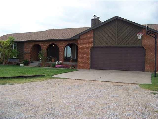 Priced to Sell! Ranch home on beautiful 5 acres. Main floor features 3 bdrms, laundry, kitchen, dining and living room. Living rm has fireplace, vaulted ceilings and wood laminate floors.Ceramic tile through kitchen, dining and laundry. Basement is walk-out with covered patio. Large 4th bdrm(no egress window), large bath rm, office and family/rec rm with wood stove and wet bar down stairs.Great covered deck to watch the awesome sunrises and pond views. New carpet in the basement, many newer windows,new siding and exterior paint, new high efficiency heat and air,new interior paint through out. Horses allowed. Goddard school bus picks up at end of road. All this only 15 min. from Wichita. Seller is licensed Realtor in Kansas. Showings may begin 2/21/2010. HOME QUALIFIES FOR RD LOAN!!!