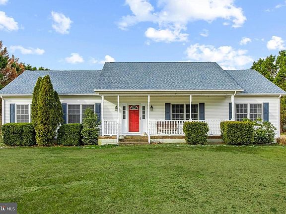 Set in a peaceful country setting on a generous lot of over three quarters of an acre, this inviting three bedroom, two bath ranch home offers privacy, space, and a relaxed way of living. The expansive backyard is framed by mature evergreen trees and backs to the woods, creating a natural buffer and a tranquil backdrop where you can enjoy quiet moments, fresh air, and frequent wildlife sightings. A cozy front porch welcomes you home and leads into a spacious foyer that sets the tone for the thoughtfully designed interior. To the right, elegant glass sliding French pocket doors open to the formal living room, while a matching set leads into the dining room, adding architectural interest and flexibility for entertaining or everyday living. The kitchen has been tastefully updated with granite countertops, new luxury vinyl tile flooring, a stylish backsplash, and a newer dishwasher. A convenient pocket door connects the kitchen to the dining room, and there is plenty of space for a dinette set, making this a comfortable spot for casual meals. The kitchen flows easily into the family room, where sliding glass doors open to a rear deck that is perfect for grilling, dining outdoors, or simply relaxing while taking in the surrounding nature. The primary suite is privately tucked away at the rear of the home, offering a peaceful retreat. The en suite bath has been recently painted, and the bedroom features its own private deck, an ideal place to unwind and enjoy the wooded views. Two additional bedrooms and a full hall bath provide comfortable accommodations for family or guests. A dedicated laundry room with an adjoining powder room and a convenient side door exit enhance everyday functionality. Recent updates include fresh paint in the kitchen and family room, and a New Roof in 2025. With no HOA, you will enjoy the freedom of country living without extra fees or restrictions. This home offers a wonderful blend of comfort, charm, and privacy in a serene natural setting, making it an ideal place to settle in and make your own.