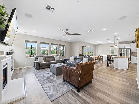 Welcome to the highly sought after community of Terramor. This stunning home is located just behind the guarded gate and is nestled on a quiet street with beautiful views. As you enter the home you are greeted with upgraded vinyl wood flooring and custom paint throughout. The Chef's Kitchen is equipped with oversized island with bar seating, stainless steel appliances, farmhouse sink, granite countertops, Herringbone backsplash and pendant lighting. The Kitchen opens to your Dining area that can accommodate a large table and plenty of room for the largest family. Family Room sits just off the kitchen with large picture windows and crackling fireplace for those chilly nights. Downstairs also holds a bedroom and full bathroom for that out of town guest or is perfect for a quiet workspace. Upstairs holds a large loft, three bedrooms equally as spacious with shared bathroom. The Luxurious owners suite offers his and hers walk-in closets, private en-suite with dual sinks, large soaking tub and glass encased shower. Backyard is complete with covered patio, raised block flowerbed, vinyl fencing and glass so you can enjoy your unobstructed views. The sellers thought of everything with this home. From the folding panel doors off the dining room to the everlights on the home. It's the personal touches that make a house a home. There are a lot of great communities in Corona, but Terramor is something special. The community's amenities include resort style swimming pool with sundeck, hot tub, toddler pool with beach entrance, parks, playgrounds, dog parks, 5 miles of hiking trails, community garden, banquet room w/catering kitchen, BBQ areas. With easy access to the I15 interstate and close to major shopping you don't want to miss out of this one. Call today for a private showing
