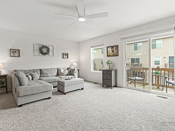 Adorable 2020 walkup townhome ready for its new owner! Spacious and open concept main level with bright south facing kitchen with great storage and vinyl wood plank flooring that overlooks the open farm space and nature. Lovely dining space and large family room with deck for enjoying some fresh air! The 3rd level has 2 secondary bedrooms sharing a hall bath, laundry is located here and well as a wonderful owners suite with double sinks and walk-in shower plus a huge walk-in closet. The lower level is finished and can be used for an office, additional entertaining space, or even another bedroom. Over the past few years the seller has added ceiling fans and additional bathroom storage throughout- this cutie wont last long!