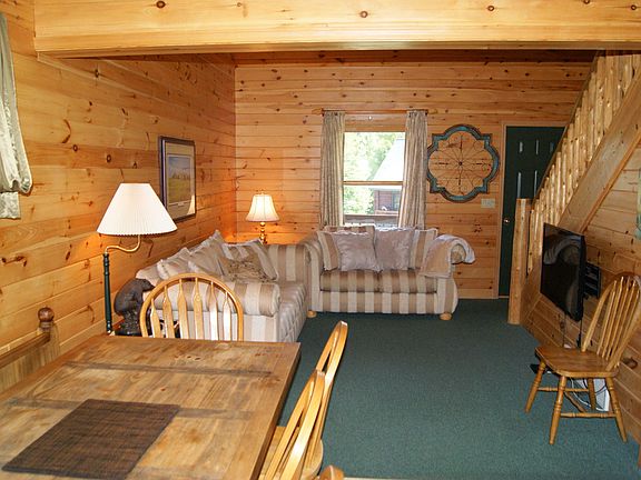 The most affordable large model Beaver Creek Cabin on the market. Located on the 11th green of The Natural golf course this cabin stands out among it's competition. Comfortably sleep 12 people for a golf or snowmobile get-away. Use it whenever you choose and rent it through the on-site management. Central air conditioning, good storage, and the only model cabin with a garage for your vehicle or toys. 2014 Kawaski 4x4 Teryx 4 800LE side by side can be included for an appropriate offer. Most furnishings less personal items are included. Enjoy resort amenities including: a new indoor pool, water slide, fishing pond, campground, fitness center, tennis courts, snowmobile rentals, & country store.