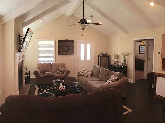 Inviting Great Room with hardwoods, vaulted ceiling with beam accents, and fireplace. The great room flows into the super kitchen offering a sit down island, granite countertops, stainless steel appliances, tiled backsplash and recessed lighting. Open dining area with chandelier & lots of windows providing natural light. Private master bedroom features a large master closet and tray ceiling. En suite Maste Bathroom with fully tiled shower, garden tub and dual sink granite countertop vanity. New HVAC unit in September 2018. Two car carport. Two inch blinds throughout. Neighborhood sidewalks and swimming pool.