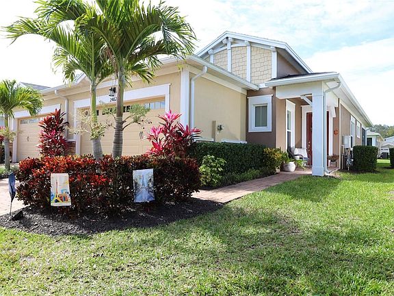 The charm of a meticulously maintained lawn with lush greenery and a swaying palm tree sets the stage for this beautiful duplex featuring 2 bedrooms, 2 bathrooms and over 1,300 square feet of living space. Once inside, You'll love the bright and airy feel of the open floor plan, with ample natural light streaming in from the windows and large sliding glass doors in the living room/dining room combo, along with a spacious kitchen equipped with a center island, breakfast bar, closet pantry, and stainless-steel appliances, perfect for the family chef! The master suite boasts a tray ceiling, multiple windows, a private en suite with walk-in shower and lots of counter space, and a generous walk-in closet. The 2nd bedroom is exquisite, boasting built in features and a spacious closet. The rear, enclosed patio is spacious, the perfect place to enjoy a cup of coffee in the morning or unwind with a glass of wine after work. Did we mention the spacious utility room? Complete with a utility sink and built-in cabinets, laundry becomes an easy task. The property next door is also for sale so if you have family or friends you would like to live close to here is your opportunity! Both enjoying the community which provides a sense of security with the gated entrance, as well as various walking paths, a clubhouse with a fitness center, a community pool, and tennis courts. Situated in a peaceful location within the community, yet conveniently close to all the amenities and attractions of the city of Saint Cloud!