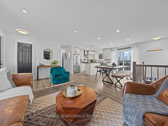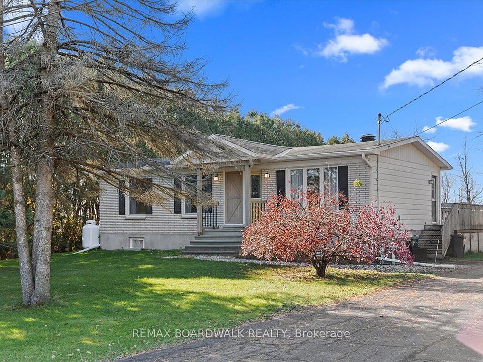 Welcome to this beautifully updated 3-bedroom, 1-bath bungalow featuring a bright open-concept floor plan with flat ceilings and pot lights throughout. Located in Cumberland, just 5 min from Orleans. ??The living, dining, and kitchen areas flow seamlessly together, highlighted by luxury vinyl flooring and a modern fireplace with a warm wood-accent surround. The updated kitchen features stainless steel appliances, a double sink, a tiled backsplash, a centre island, and ample workspace for cooking and entertaining. A patio door off the dining area leads to a large deck overlooking the private yard, surrounded by mature hedges and complete with a storage shed. The home offers three comfortable bedrooms, including a spacious primary bedroom with ample closet space. The fully updated 5-piece bathroom features dual sinks and a white subway tile bathtub surround for a clean, modern look.Additional highlights include vinyl windows, a newer roof, a newer furnace, and a newer septic tank. Recent upgrades include septic tank, plumbing, electrical, insulation, water softener, reverse osmosis system, well pump, and parging, along with kitchen, bath, flooring, Vinyl windows, Furnace and Roof. The property also features a convenient drive-thru driveway from Dunning Road to French Hill Road. A hardwood staircase with metal spindles leads to the lower level, where you'll find a bright laundry room and a spacious rec room with five large windows and a suspended ceiling with pot lights-offering plenty of potential for an additional bedroom and bathroom. This move-in-ready home blends modern updates with functional living in a peaceful setting, just minutes from city convenience.