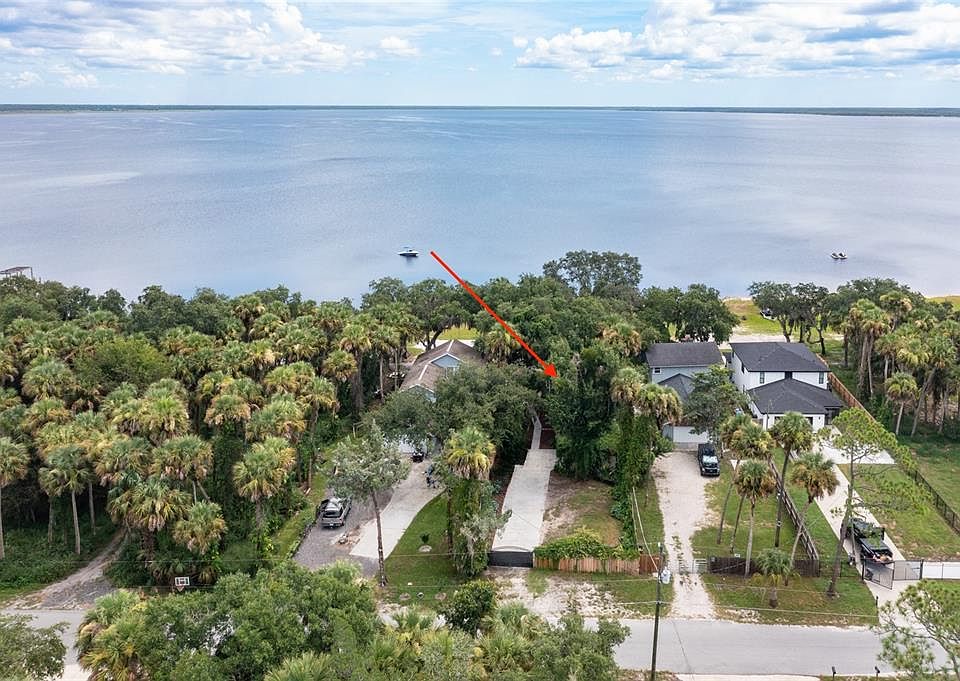 They say life is better at the LAKE!! Now's your chance to find out for yourself. Love to boat, fish, swim, or just love a beautiful morning sunrise or sunset? You can have it all from your own back yard....the views are priceless!! This house is located on Lake Harney which is connected to the scenic St. Johns River. Truely the perfect place to call home!! This totally updated home offers a large eat in kitchen with a center island, newer stainless-steel appliances, shaker cabinets, and granite countertops, which continues throughout the bathrooms. The living space is all open concept with breathtaking views of the lake!! This home offers 2 bedrooms, 2 baths, both with walk in showers, and travertine floors throughout. Outside you can enjoy meals and family gatherings from the large deck overlooking the lake, while being shaded by the beautiful large majestic oak trees!! The yard is very tropical with lots of beautiful plants, shade, and is completely fenced in. Property also includes a paved driveway and sidewalk leading to a nice workshop and gardening shed. Come check out this family friendly neighborhood, with no HOA, raise your own chickens, and enjoy the freedom you will have in this small country town atmosphere. Excellent rated schools and located within 30 mins of shopping and beaches. Owner is a FL licensed real estate agent. House can come completely furnished, including the wall mounted TVs. MOVE IN READY.