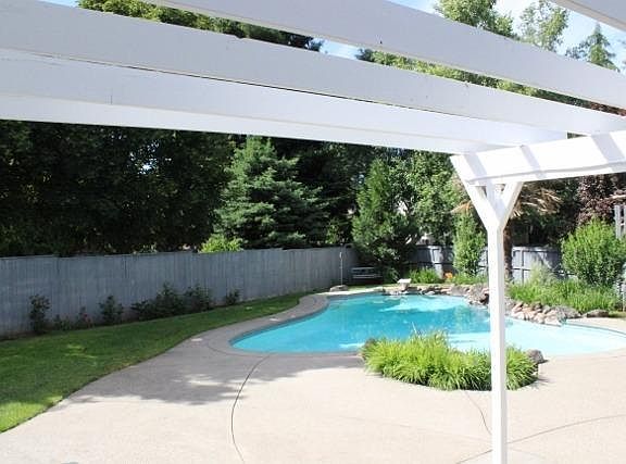 Beautiful updated Brookdale Meadows custom home built by Gary Shaw. 3 Car garage with work area and lots of cabinets, newer updated kitchen with double ovens, gas cook top, walk in pantry, designer island, quartz granite counter with white cabinets and beautiful wood floors! Large formal dining room with built ins plus large vaulted ceilings in living room, beautiful open railing staircase to 2nd level, large 4 bedrooms and large windows throughout family room with gas log fireplace opens to kitchen and breakfast rooms with French doors to large patio area. Nice master suite with double doors, wood shutters, coffered ceilings, double sinks, plus vanity area, garden tub, large shower, 2 closets, 1 walk in closet. New exterior paint, tile roof, lots of hardwood floors, crown molding. Lagoon gunite heated pool w/gas & solar heater w/waterfall. Beautiful private large backyard with garden area, RV parking, 3 car finished garage with work bench and lots of cabinets & utility sink.