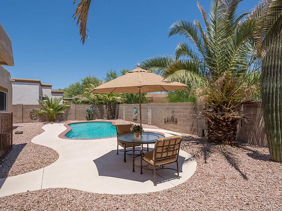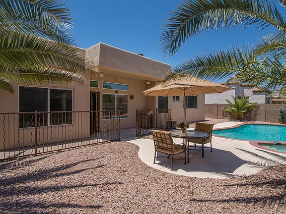 Move in today, in the gorgeously remodeled Northeast home. Enjoy the beautiful Knotty Alder cabinetry, stunning granite kitchen countertops, 18x18 earthtoned floor tiles throughout, limestone countertops in baths, freshly painted interior walls, open/bright/airy floorplan, enclosed front courtyard, custom designed security screen doors and other special designer touches. Come take a dip in the sparkling pool and spa or entertain in the very private backyard which backs to open space. Low care landscaping includes prize winning cacti and palm trees. Well maintained showing pride of ownership. NO HOA NO POLY pipes (RARE FIND)This home will sell quickly.