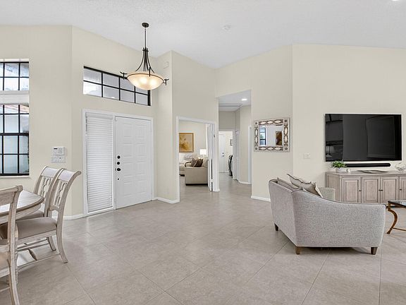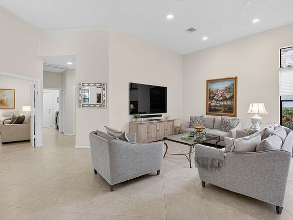 Discover effortless, resort-style living in this beautifully maintained single-story home located in the desirable Village of Oak Run within the prestigious Broken Sound Country Club. Offering over 2,100 sq ft of light-filled living space, this 3-bedroom, 2.5-bath residence blends comfort, style, and the best of South Florida living. Step inside to find sleek porcelain tile floors, volume ceilings, and impact windows and doors that enhance both elegance and peace of mind. The spacious primary suite features a large walk-in closet and a luxurious en-suite bath complete with a frameless walk-in shower and a separate soaking tub, your perfect private retreat. The kitchen is designed for both function and style, showcasing rich wood cabinetry, abundant storage, expansive counter space, and stainless steel appliances. Enjoy the Florida lifestyle outdoors with two covered, screened-in patios overlooking a fully enclosed backyard adorned with lush tropical landscaping, ideal for relaxing or entertaining year-round. Move-in ready and perfectly located, this home offers the ultimate in comfort within one of Boca Raton's premier country club communities.