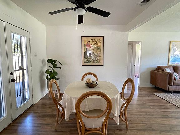 This 2-3 bedroom, 1-bath house in Fresno, California, is a charming and inviting home that offers a delightful combination of features. The spacious living room provides ample room for relaxation and entertainment, making it perfect for both quiet evenings and gatherings with friends and family. The wood floors not only add warmth and character to the space but also contribute to a cozy atmosphere. The French doors are a wonderful touch, allowing natural light to flood the living area and providing a seamless transition to the outdoors. They not only enhance the aesthetics but also promote a sense of openness and connection to the surrounding environment. The dark brown kitchen cabinets add a touch of sophistication to the home's interior. They create a striking contrast against the wood floors and provide ample storage space for all your kitchen essentials. The kitchen is not just a functional space; it's a stylish one too. Overall, this house in Fresno, California, is a delightful blend of comfort, style, and practicality. Its combination of features makes it a truly appealing choice for those seeking a comfortable and aesthetically pleasing place to call home.