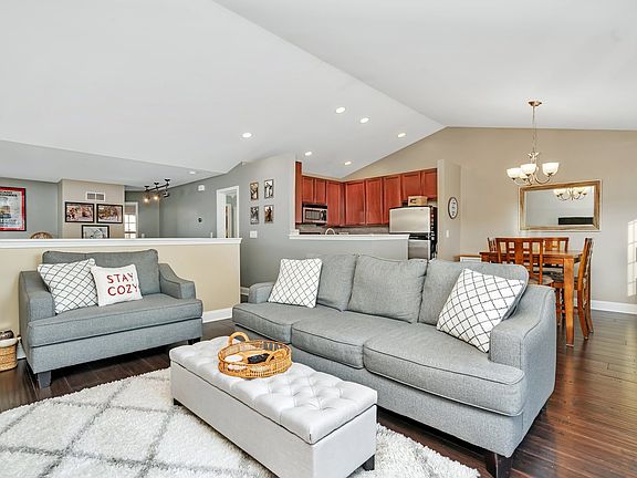 Welcome to this charming duplex located in the Neufairfield neighborhood. This lovely home features 2 large bedrooms and 2 full bathrooms, offering an ideal layout for comfortable living. As you enter, you'll be greeted by beautiful bamboo floors that flow throughout the main living areas. The vaulted ceilings create a bright and airy atmosphere, complementing the spacious open floor plan that includes a spacious living room and dining room-perfect for entertaining. The kitchen is highlighted by 42" cabinets and stainless steel appliances, providing both style and functionality. The large master bedroom boasts a walk-in closet and an adjoining bath, complete with a double vanity, separate shower, and soaking tub for ultimate relaxation. The large loft area offers potential as additional living space or a home office. The walk-out lower level features a spacious family room with a beautiful built-in bookshelf divider, adding both charm and practicality. Located with easy access to the interstate and located in New Lenox grade school district, this duplex offers both convenience and comfort.
