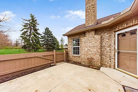 Ranch end unit condo with treed property provides peace and quiet located at the end of the street for relaxation in this highly sought after Epcon community. Open concept w/cathedral ceilings, abundance of natural light. crescent transom windows. Great Room w/gas log FP, 2 generously-sized bedrooms. Updated kitchen includes new granite counters, sink and faucet (2013), new Coretec luxury vinyl plank flooring (2020). Ceramic tile foyer and bathrooms. Bright and sunny enclosed gated patio provides opportunity to enjoy gardening. New roof (2010); Storm Entry Door w/self-storing screen (2012); new carpet/pad throughout (2015); Lenox 13 seer HVAC (2020); garage door (2013). Nature Stone garage floor with floor-ceiling cabinets. Washer and dryer convey.