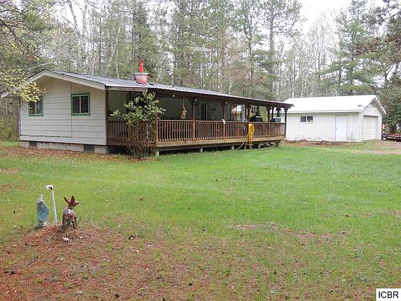 Location, location, location! This manufactured year-round home sits on 3 acres, surrounded by beautiful white pine, red pine, and birch trees giving the feeling of serenity and privacy in the northland! However, this home also is conveniently located within walking distance to Scenic Pines Convenience Store & Restaurant, as well as the boat access for Round Lake. This is your opportunity to live the northern life without paying the lake taxes. The 3 bedroom, 1 bath home features a full unfinished basement, new carpeting, and a new roof. Enjoy a cup of coffee and listen to the birds on the huge front porch every morning at your new scenic abode!