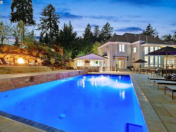 Impeccably designed West Linn gated estate with entertainer's patio & pool with Mt. Hood views. Completely reimagined in 2018, every surface in this home elevated to achieve a luxurious yet comfortable & livable floorplan. Pamper yourself in 1,200 sq. ft. master suite with boutique-like dressing room. Enjoy indoor/outdoor lifestyle year round with covered outdoor kitchen, deluxe pool & lounge area, bocce court & gardens. Secluded 2.64 acre, completely private property. Walk to Oregon Golf Club.