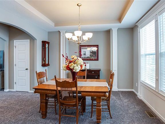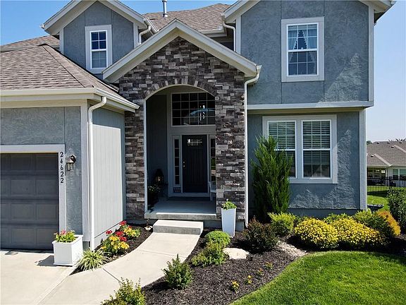 Welcome to this unique 5-bedroom, 4-full bath home nestled in the beautiful Forest View neighborhood. This two-story gem, built in 2018 by its original owners, boasts a wealth of updates and meticulous care. Step inside and discover a thoughtfully designed floor plan featuring a main floor bedroom and full bath - currently used as an office. The heart of the home, the kitchen, has been enhanced with an updated range and dishwasher, ensuring both style and functionality. The sellers have spared no expense in creating a comfortable living environment, including the addition of electrostatic filtration to the furnace and a whole-house humidifier. They partially completed the basement by carpeting the basement stairs and adding flooring throughout the basement. The basement itself offers a versatile space, egress windows, plenty of storage an open pallet available to future owner to make it their own. Enjoy the outdoors in your beautifully landscaped backyard, complete with a covered deck for entertaining. The fenced backyard provides privacy, with an egress window-cover with a locking system to ensure safety. This home also features practical additions, such as a barn door in the primary bedroom leading to the ensuite bath, and an HOA-approved trash storage unit discreetly installed on the side of the house. With top-rated schools in the Olathe school district and proximity to amenities, this property is an ideal home. Don't miss the opportunity to make it yours!