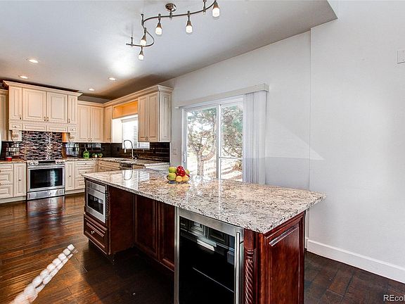 10k PRICE REDUCTION! Experience this show stopper today! This 3bed 4bath open concept home has been elegantly updated to include: 2-story stone fireplace, maple cream kitchen cabinets, large granite island that doubles as the designated dining area, slab granite countertops that extend into the laundry room, updated lighting, and storage galore! The basement can be turned into a bedroom or use it as it is for entertaining! You can't miss the Swarovski crystal chandelier above the wet bar which includes a beverage fridge and mini dishwasher! The large 3/4 bathroom is high end tile top to bottom with heated floors! Upstairs, you’ll find a primary suite and two secondary bedrooms–one room includes custom built-in bunk beds! The remodeled second floor bath also has heated floors, high end tile and fixtures. Smart home technology, smart irrigation, and tankless water heater. Conveniently located near I70, E470, DIA, Southlands Mall, Buckley AFB, Amazon and Anschutz Medical Campus.