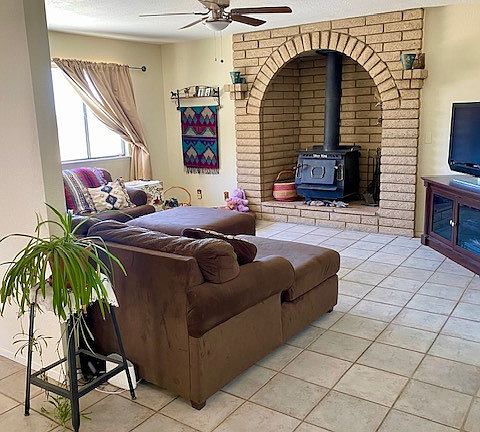 WHAT A VIEW VIEW VIEW!!! Sycamore Rocks Horse Property on 1.25 Acres with a WONDERFUL view of the mountains behind, the city lights and the valley below. This Charming 3 Bedroom 2 Bath home has a BONUS ROOM in addition to the 3 Bedrooms and a large ENCLOSED PATIO SUNROOM!! The property is fenced and cross fenced. It features tile floors throughout and a custom brick arched Wood Stove wall. The perfect spot to warm by the fire and look out the window and view the city lights. The kitchen is large and has skylights to keep it bright. There is lots of space in the pantry. Dryer, and Refrigerator are included. Cental air and heat PLUS there is a swamp cooler!! The enclosed Patio Sunroom has sets of French doors that open to all areas of the back yard. Open the doors and let the summer breeze blow through. There is a pass-through window from the kitchen, perfect for entertaining. The Laundry Room is oversized and has access to the Patio Room and Backyard. Bonus room is off of the Laundry Room. Main Bedroom suite has 2 closets and a jetted tub. The two secondary Bedrooms have lots of closet space and are near the Hall Bathroom. Pick your favorite spot to relax and enjoy the beautiful surroundings. This property is in an area that qualifies for USDA financing with a Zero down payment!! Buyer to verify all information.