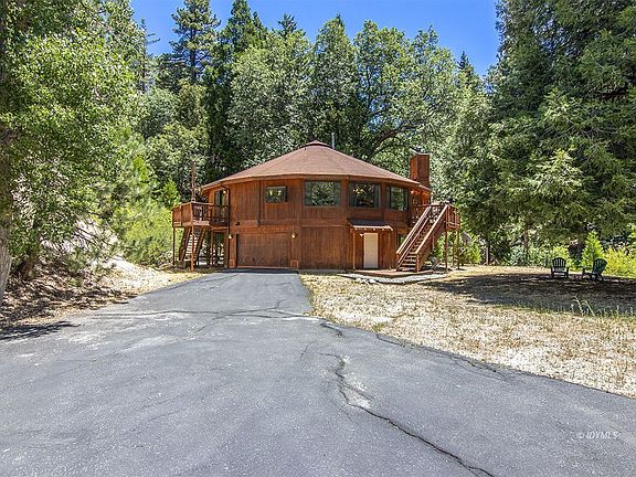 TOTAL PRIVACY ON 9 ACRES. Located just 3.5 miles from downtown Idyllwild, this beautiful property offers complete seclusion in a picturesque wooded setting with sun, views and essentially your own private forest. Consisting of three separate parcels, the 9.2 acres has numerous unique and special areas, including a seasonal creek and proximity to National Forest and trails. The 1999 built home has a large great room with fireplace, wood paneling and a dramatic wall of windows to enjoy the wonderful views. The large kitchen and dining share the same open feeling, lending an overall sense of spacious living highlighted by multiple exposures to the outdoors. There are 4 bedrooms (3 without closets), 2.75 baths, a large family/game room with wood stove, laundry room with sink and storage, propane forced air heat to main level, attached garage with huge storage or workshop area, mud room entry to lower level, multiple decks/balconies, large usable front yard and covered wood storage. There is a foot path and sitting area down to seasonal Logan Creek that in high moisture winters has a picturesque water fall.
