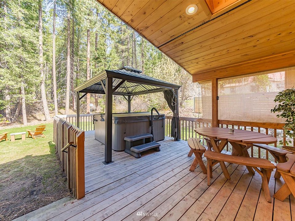 Custom-built chalet has it all. Designer finishes, river rock, pine highlights, skylights, hardwood floors, two huge bedrooms with 2 full baths, den/office off main BR which is being used as additional sleeping area, full kitchen w/pantry and eating counter. Backyard opens into forest protected area with nature trails at your back door. Fully covered deck with hot tub. DRIVE-BYS DO NOT TELL THE INSIDE STORY. It is a MUST SEE. Vacation or get-away home or permanent home for all seasons of the year. Ponderosa features community living, hiking trails and access to Wenatchee River. All winter/summer sports and a short drive to the fun town of Leavenworth and to Stevens Pass. Chelan Co Short Term Rental Provisional Permit. Info on request