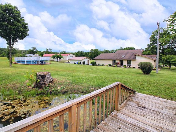 This once in a lifetime home will WOW you! You will note the exceptional care and love given to this home while driving up the asphalt driveway! The beautifully maintained yard offers lots of room for entertaining, fenced area for you fur babies, 3 outbuildings, gazebo, pool, pond and dock!! The inside will not disappoint as you come in from the patio into the homes foyer and stepping in to the vast great room. This home is so unique from it's 2 sided fireplace, wood beamed ceiling, rock walls and windows that go on and on. There is also a spacious Family room, Large "romantic" Master Bedroom with double closets and full bathroom. Two other bedrooms, kitchen with oak cabinets and stainless steel appliances and center island, large laundry room with mop sink, and large pantry. There is a 1 car attached garage, a detached 1 car garage and 2 MORE detached garages/Workshops!! But wait don't forget about the pool and fully stocked pond all sitting on 3.52 acre. You Gotta see this one!