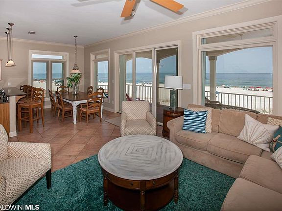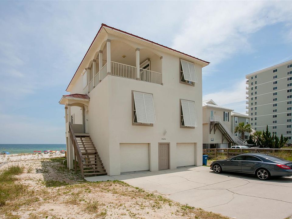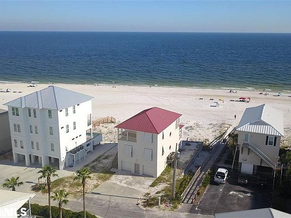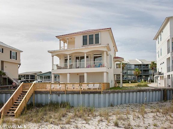 FURNISHED tri-level Gulf-front home on a huge lot! 5 large bedrooms & 4 baths total 2760 square feet. Gas fireplace in the living room with beautiful views of the Gulf. Tiled in common & wet areas with carpeted bedrooms. Kitchen offers stainless appliances, a wine cooler, granite counter tops, oak cabinets,a dining area, & pendant lights over the bar. Master bedroom features a private Gulf-front balcony and large master bath with separate tub/shower and large double vanity with powder area. Plenty of windows across the south side of the second floor give lots of natural light and breathtaking views of the beach. The ground floor is being used as a bunk room but the possibilities for that area are endless! Lot is 435 feet deep with 68 feet of frontage on the Gulf. Survey located under documents. Elevation certificate available upon request.