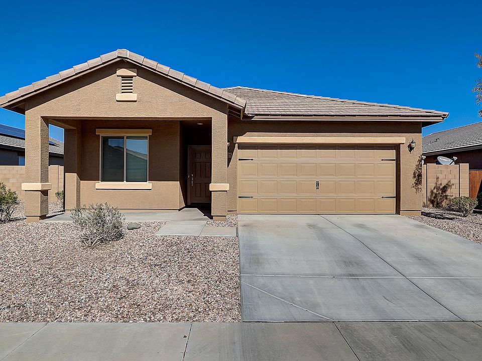 Wonderful single level Bisbee plan with a North / South exposure and 3 bedrooms 2 baths - Features include: large great room - separate dining area - kitchen with granite counter tops and lots of cabinet space, built-in microwave, refrigerator - large master suite has walk-in closet - bathroom with a separate tub and shower - the subdivision has amenities that include: a community park, basketball courts, BBQ areas, picnic areas, children playground - ***BONUS: Solar panels/system is owned***