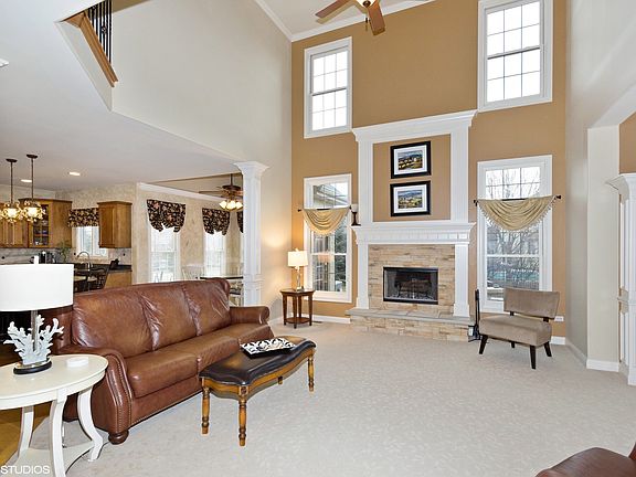 Stunning formal model home in desirable River Crossing Subdivision. Two story foyer greets you with gleaming hardwood floors flow into dining room, kitchen and breakfast area. Kitchen with custom cabinetry, granite counters, island , stainless appliances, breakfast area with dramatic specialty ceiling. Kitchen is open to two story family room with fireplace and adjacent media room. White two panel arched doors , white trim and pillars add to the uniqueness of this home. Formal dining room w/ tray ceiling, main floor den w/ glass french doors. Master bedroom suite w/ double doors, tray ceiling and lighting in the crown. Master bath w/ double sink vanity, jetted tub and separate shower. 7 x 24 master closet. Loft area and catwalk has custom handrail w/iron ballisters that overlook the foyer and family room that adds to the dramatic look of this floor plan. 3 car heated side load garage. Professionally landscaped, stamped concrete sidewalk, brick paver patio.
