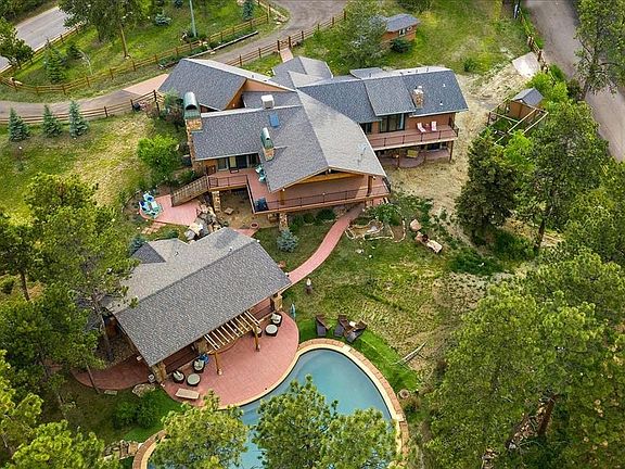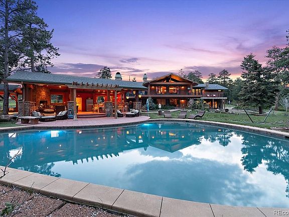 The best home for entertaining and comfortable luxury living. This stunning Evergreen compound is nestled in a protected setting with mountain valley and city light views featuring bright open elegant living spaces. Recently completed in 2018 by a premier builder intended for their family's forever home, no detail has been spared in this spectacular residence. A room by room feature list is available for qualified buyers as there are too many to list here, but we must mention the outdoor open-air heated Pool Pavilion, complete with a full kitchen, fireplace, living and dining areas and cabana style bathroom, steps from and reflected in the decorative and completely functional heated and low maintenance wading pool. Every bedroom is paired with a private ensuite bath and the bunk room is so fun. You'll also love the guest cabin and the detached workshop and extra garage. Ideally located with convenient access to Evergreen and Denver. This is the one. Please note, there are special COVID-19 related requirements for setting a showing.