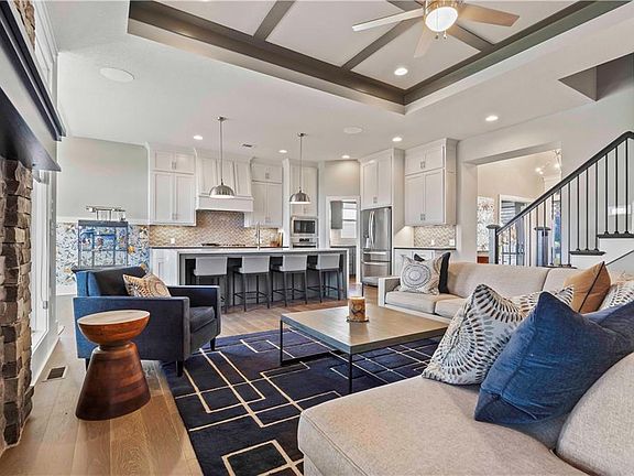 ABSOLUTELY STUNNING 1.5 STORY TUCKED IN A CUL-DE-SAC! THIS ONE WILL IMPRESS THE PICKIEST!! Light and bright throughout! Gorgeous wide plank hardwood floors in main living areas! Great room has tray vault ceiling and see-thru fireplace! Stunning kitchen is sure to please with waterfall quartz eat-in island, gas cooktop, built-in microwave and oven, stainless steel appliances and spacious butler's pantry! Breakfast area and primary bedroom have screened in porch access. Relax in the spacious primary retreat that boasts 2 vanities, soaking tub, walk-in shower with bench, large walk-in closet with convenient access to laundry room. Second bedroom or office with window bench, drop zone and half bath complete this level. Head up and find an amazing loft/family room space! All 3 bedrooms with walk-in closets! Bedrooms 3 and 4 have their own vanity and shared bathroom. 5th Bedroom has private access to the main bath on this level. Need more space? Finished basement includes HUGE Rec Room with Wet Bar, Bonus Room and another half bath! LOVE the outdoors--so many ways to enjoy them here! Screened in porch, paver patio with fireplace and covered patio with outdoor cooking area! Minutes to Olathe Lake, Ernie Miller Park, major highways, shopping and dining! WELCOME SPRING IN THIS BEAUTY!