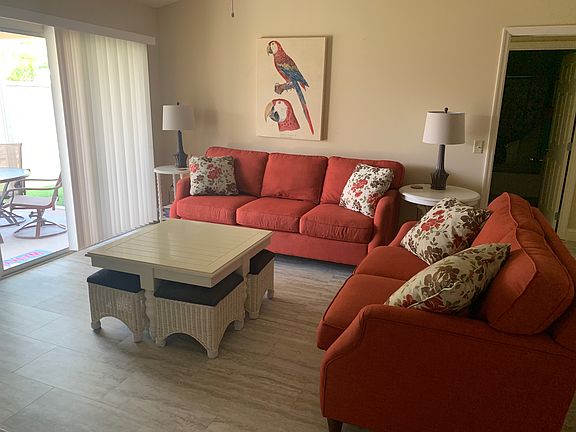We have a beautifully furnished home in a quiet neighborhood - fully stocked for comfortable living. Master bedroom with attached bath and walk-in closet has a king size bed. Guest bedroom is next to the main bathroom with a walk-in closet and queen size bed. Office has a comfortable couch and desk. Kitchen is full equipped with electric appliances and all the essential pots, pans and dishes. Washer and dryer in the garage. Laminate floors throughout. Privacy fence in the back. Screened in lanai as well as outdoor seating and barbeque area (with propane barbeque). We pay for water/sewer, amenities, and lawn care. Tenant is responsible for electric and cable/internet. First and last month's rent due at signing of the lease. Yearly rentals only. You will pay for electric. We will pay for water, amenities fees, and internet. The $1000 security deposit, less a $300 cleaning fee, will be returned within 14 days of departure if an inspection of the property reveals no damage or loss of property. $500 non-refundable pet deposit for rentals longer than 6 months. - Rental prices based on 2 adult occupants (Occasional visitors are welcome but extended stay visitors - beyond three days - will be charged $100 per person/per month). - Check-in: 3pm - Check-out: 10am The Villages is an active Senior Community for residents 55yrs+. Young visitors are allowed for limited time periods. Family activities are provided.