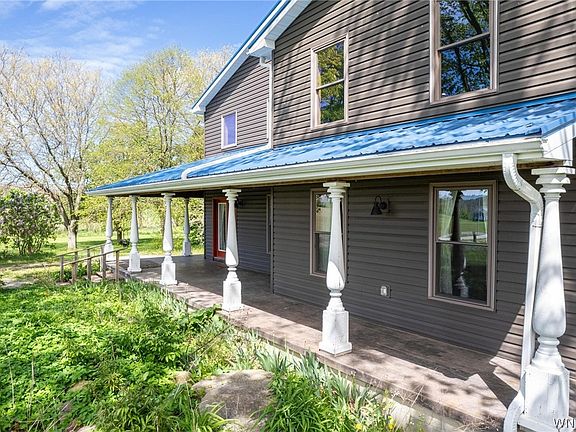 Discover your dream home! This 2017-built marvel features an open floor plan with soaring two-story ceilings and a balcony overlook, bathing the great room in natural light. Luxurious 1/2" bamboo flooring flows throughout. The country kitchen boasts a huge walk-in pantry for ample storage. A flexible first-floor space can serve as a den, office, playroom, or 5th bedroom, accompanied by a guest room with a private bath. The spacious first-floor master suite offers glorious views, a huge walk-in closet, and a double sink, garden tub, and separate shower. Upstairs, a sitting area overlooks the living space, with generously sized bedrooms and a double sink bathroom. Enjoy the large wrap-around porch and handicap accessibility. With a metal roof, new vinyl siding, and storage shed, this home is a beautiful blend of comfort and style on a picturesque private acre. Don't miss out!