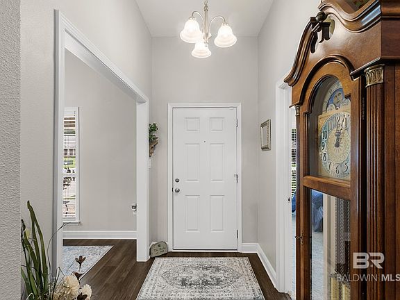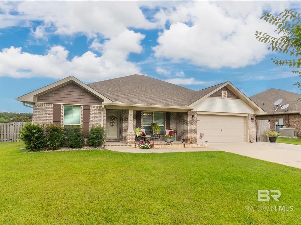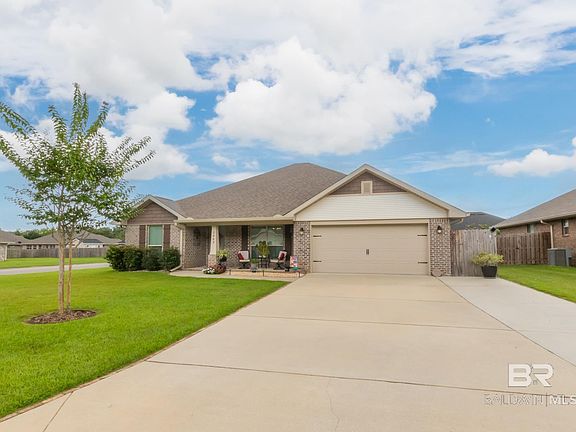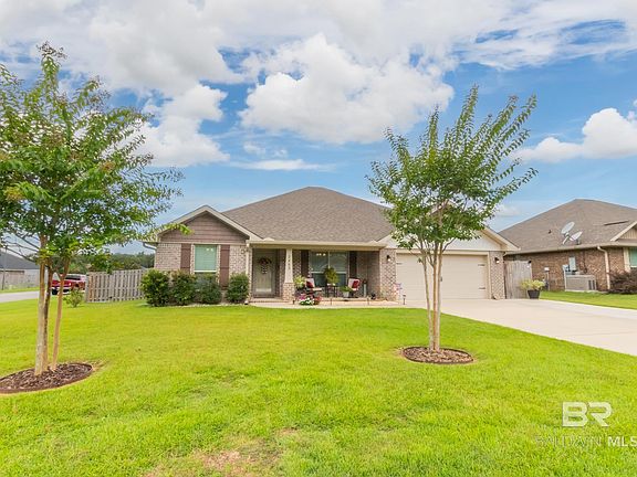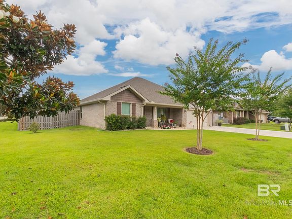 Welcome to Myrtlewood in Foley! This gorgeous 4 bedroom, 2 bath corner lot is full of the most desirable elements you could ask for in this area. This brick home was built by Adam's Homes in 2020 and boasts the most popular floor plan of a spacious 1,930sqft including tall ceilings throughout, custom kitchen cabinets, tile back splash accenting beautiful granite countertops. Matching stainless steel appliances that convey to new owners. You will also find gorgeous upgrades within the home. Newer upgraded interlocking luxury vinyl plank flooring in kitchen, dining and living room. Beautiful cased windows with level or blinds. Kitchen upgrades also include extra large pantry with added shelving and upgraded cabinet pull out drawers! Each bedroom boasts extra space that could also be used as an office is desired. The extra large master bedroom also includes the popular his and her large separate closets! Relax after a long day in the large soaking tub. Also both toilets have been recently replaced as well. Home also has active home security system by Cove Security that covers all windows, doors, two motion cameras and interior camera. Outside in the front of the home is a beautiful landscaped entry with widened driveway that ensures all of your friends and family have a welcomed place to stay. Shutters were all recently painted as well. In the backyard is a gorgeous covered patio with upgraded blinds and extra area for fun backyard grilling. Also included is a large outdoor building that is perfect size to keep your outdoor equipment and extra tools or a fun play room. HVAC serviced twice a year by On Time Maintenance in Fairhope. Come see why this is one of the most popular neighborhoods in Foley with super low HOA of only $140 a year! Come and see this beautiful home today before it is gone! Please schedule through Showingtime today! Buyer to verify all information during due diligence.