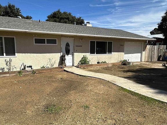 Nice little ranch house in Lake Morena Village. Large open concept living room, dining room, kitchen plan. Large and roomy main living area with fireplace focal point. Granite counters in kitchen with trendy green cabinets. Cute little dining area and galley kitchen. 2 roomy size bedrooms and 2 bathrooms. Nice large front and rear yards and a storage shed and chicken coop that stay. Separate laundry room with pantry. Garage has been converted to a bedroom with separate entrance could be third bedroom or office. Located in a nice community within walking distance to the lake, biking, hiking and horseback riding. Great starter home. Needs some TLC but has lots of potential.