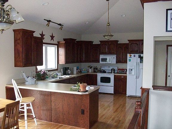 Gorgeous ranch home on a corner tree-lined lot at Easter Lake. This custom-built home has 4 bdrms, 4 baths, hardwood floors, casement windows (everywhere, vaulted ceilings, 9 ft high walls. The master suite is large & inviting, a sanctuary, walk-in closet, full bath, includes whirlpool tub and shower. This one-of-a-kind open plan vaulted ceilings, plant ledges, & hardwood floors is the perfect place to entertain. The kitchen features a peninsula room for bar stools, plenty of prep space and even room for a mobile center island. New stainless-steel appliances are on order. The living room is spacious, yet cozy with a gas fireplace, trimmed in warm oak trim. Just off the dinette is a unique office space and the kitchen has another built in desk for small craft projects. The basement is finished, wide open full bath & laundry. The backyard is fenced a large deck and woodshed. The garage is huge Enjoy