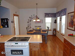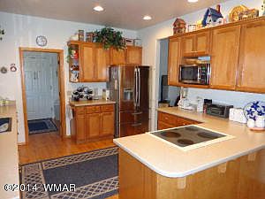 Beautiful cedar sided custom built home with 9 feet ceilings, vaulted ceiling in great room with tongue and groove pine. 12 X 20 covered deck off great room, open decking off master 6 X 16. Oversized garage 23 X 25 with 16 X 8 door. Large utility room with custom cabinets and work area. Lots of built in storage. Beautiful eat-in kitchen. Owners have put in a concrete driveway. Home is offered fully furnished ready to move into. Located in the upper end of Pinetop Country Club in a very quiet